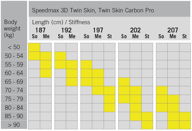 Twn Skin Carbon Pro: Nejnovější přírůstek do rodiny závodních Twin Skin se vyznačuje kratším a širším profilem navrženým tak, aby poskytoval bezpečný odraz při zachování kvalitního skluzu. Konstrukce vyrobená pomocí technologie Cold Base Bonding poskytuje lepší voskování a broušení, aby se maximalizovala rychlost.